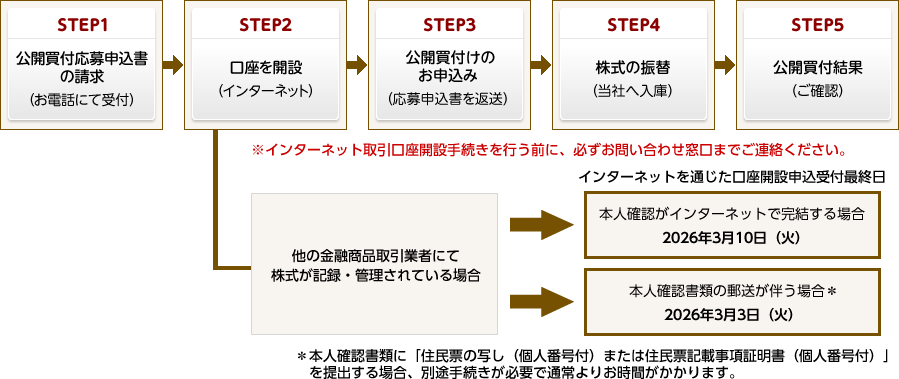 また、買付期間最終日が近づくにつれ、受付場所が混み合う恐れがございますので、なるべくお早めに口座開設のお手続きをお取りくださいますようお願いいたします。